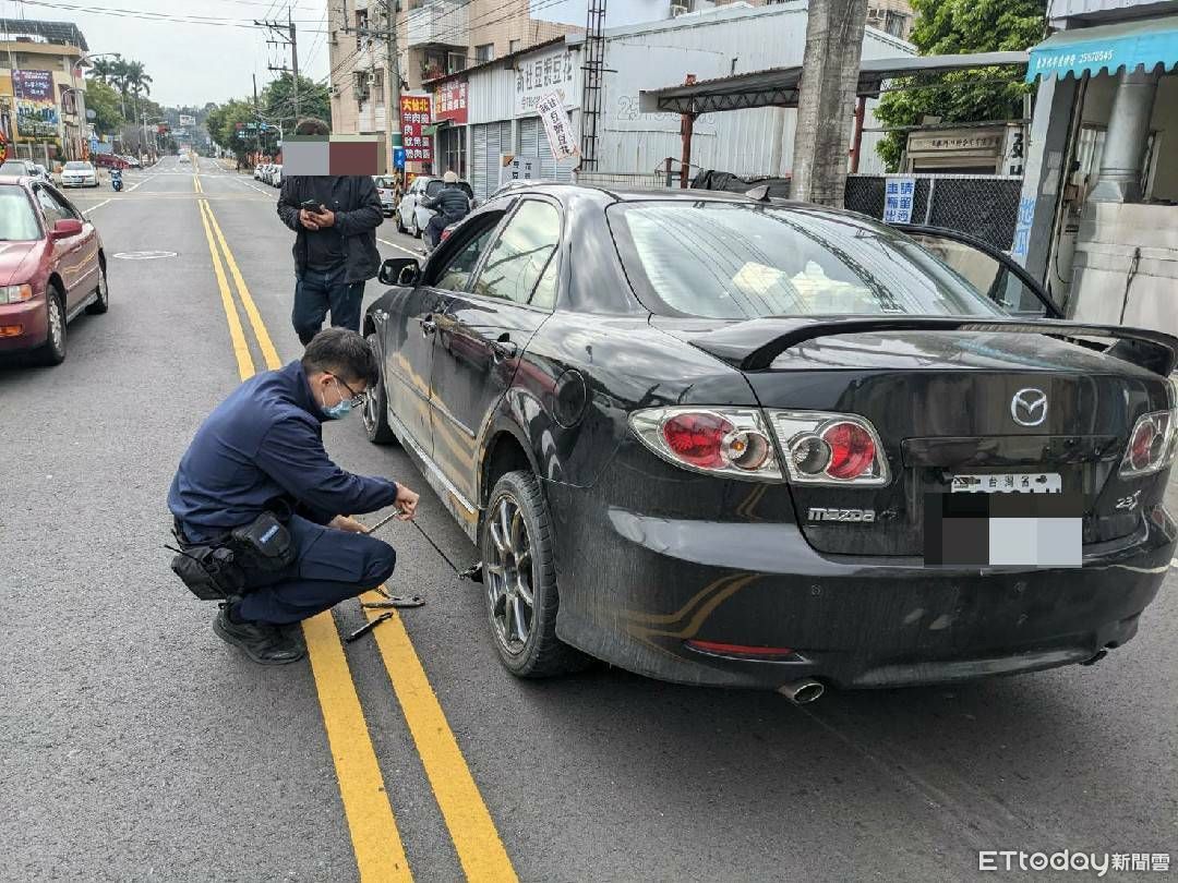 ▲員警到場使用千斤頂。(圖/記者哈勇嘎奧翻攝)