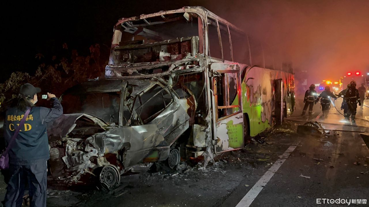警方初判,46歲陳女因酒駕自撞外側護欄,後方車輛煞車不及發生追撞,總計有1台遊覽車、5台自小客車發生連環車禍。遊覽車及1輛自小客車隨後起火燃燒,遊覽車司機跟小客車女乘客因逃生不及當場喪命,造成2死9傷的憾事。