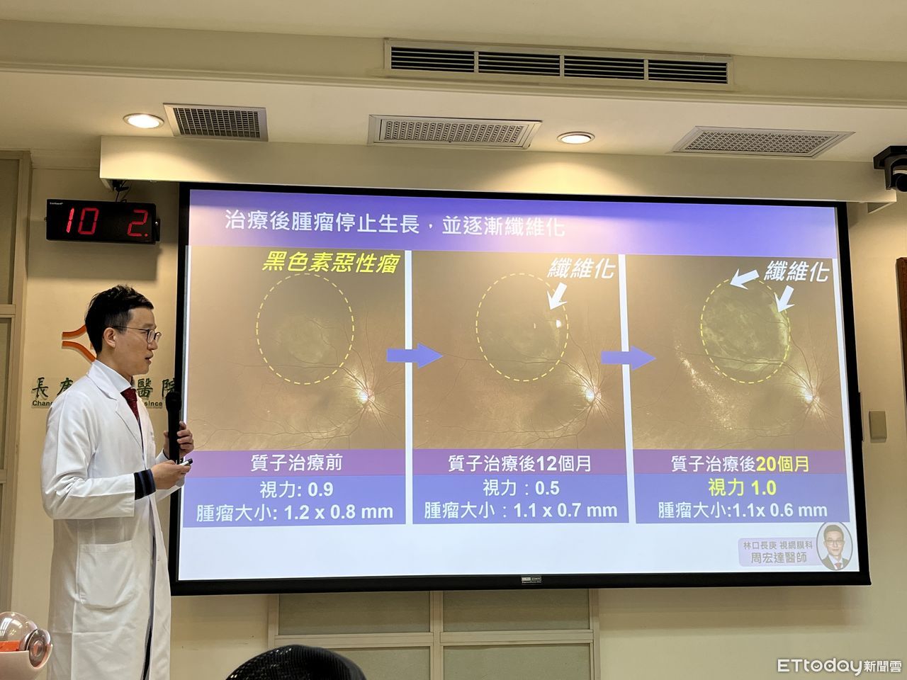 收治賴小姐的林口長庚眼科周宏達醫師表示,眼內黑色素瘤初期症狀大多不明顯,可能只有持續的看到閃光以及飛蚊症,因此很多時候病人經過數個月檢查、轉診再轉診,終於確認診斷時,腫瘤厚度已經超過1公分,錯過黃金治療時機。而過去的治療原則往往是看到腫瘤就將眼球摘除,病人幾乎沒有保留眼球及視力的機會,且外觀可能受到大幅影響,雖然後來導入光子治療,但因散射面積較大,視力通常也無法保留。