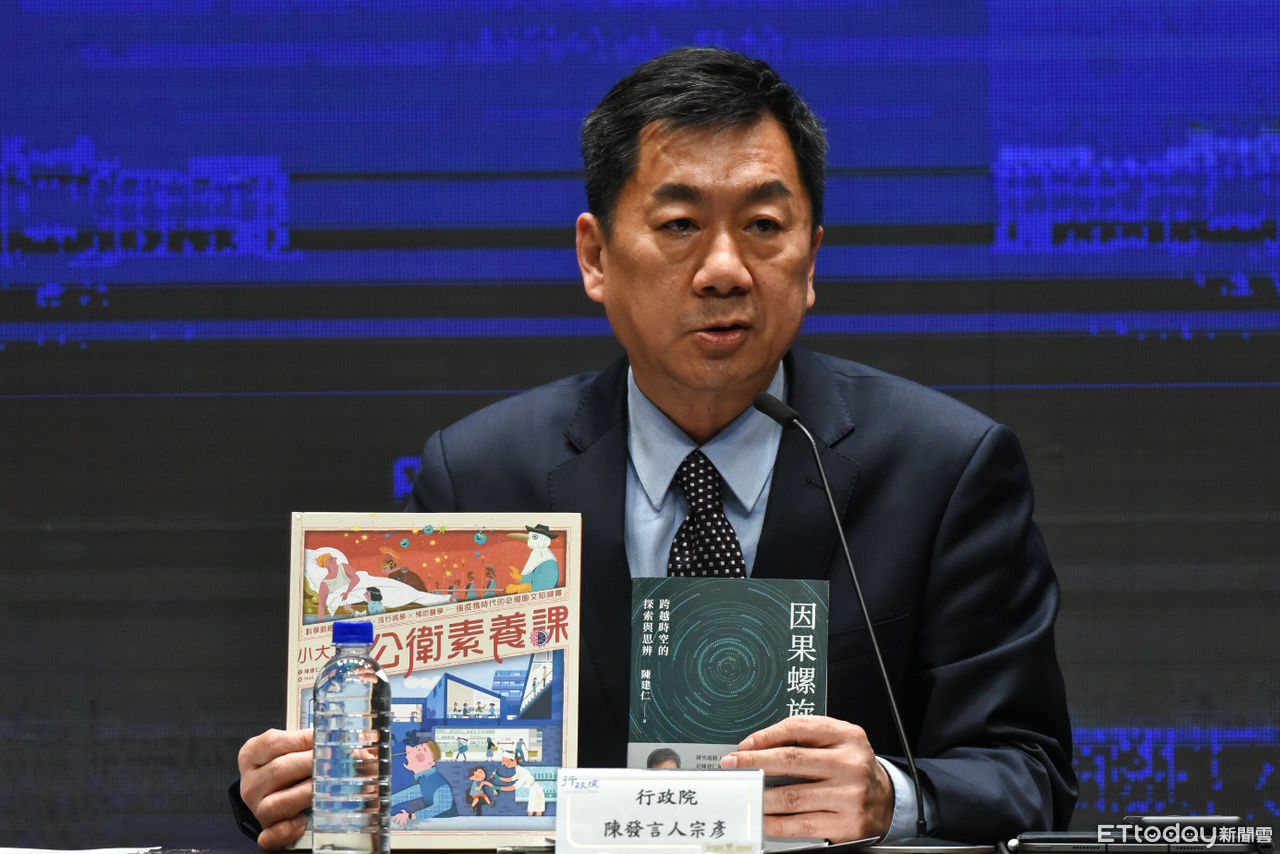 ▲行政院長陳建仁贈書六都首長,《小太陽的公衛素養課》《因果螺旋》。(圖/記者林敬旻攝,下同)
