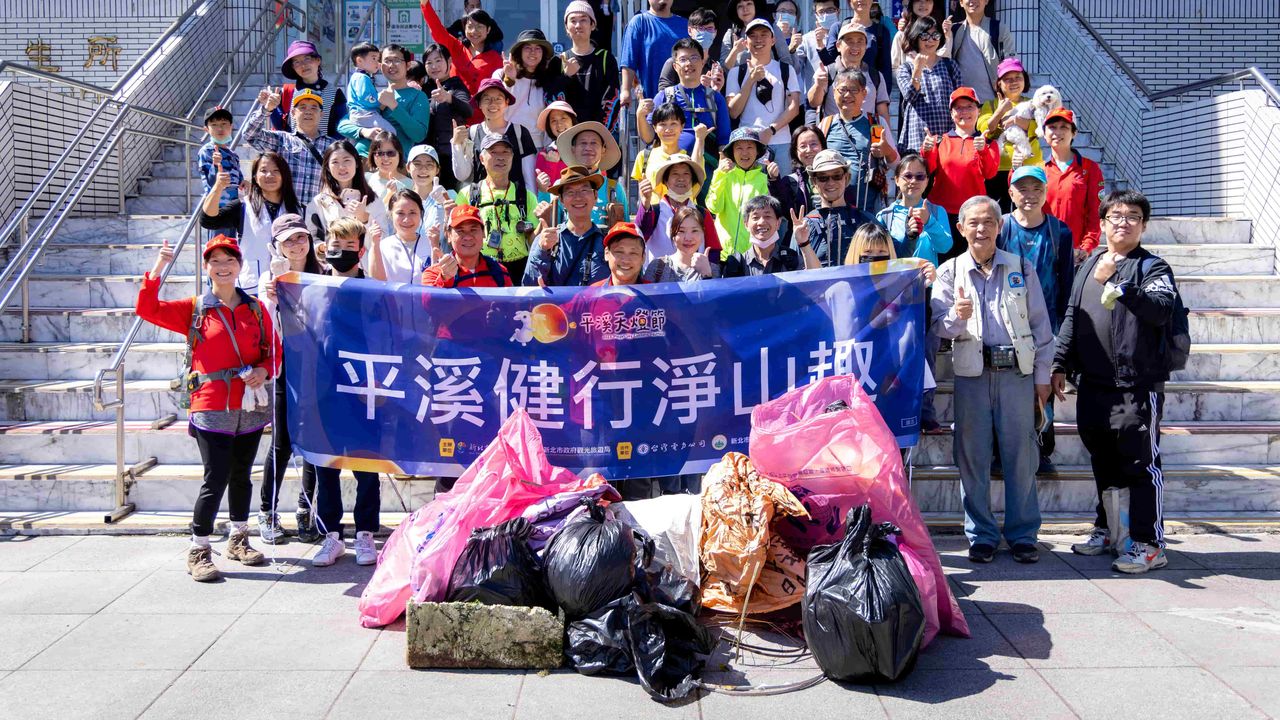 參加淨山的民眾熱情不減,手持夾子、長勾及垃圾袋,沿途撿拾步道上的垃圾,主辦單位也很貼心準備手套,讓參加者於過程中能夠安全保護雙手,在所有參與者的努力下,共清理出近20袋垃圾,與往年相較數量增加,能夠感受平溪觀光人潮回暖趨勢。
