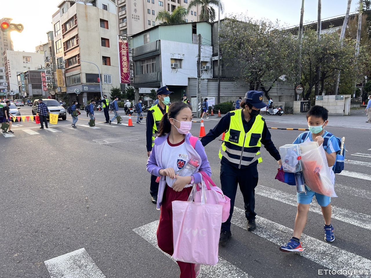 ▲台南市國中、小學2月13日寒假後開學首日,台南市警局各分局針對轄內國中、國小等,啟動學童上下學安全維護工作。(圖/記者林悅翻攝, 下同)