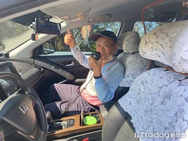 ▲台南市龍崎區牛埔里里長,配合南警「大放送」,希望行經182線龍崎段的民眾,在享受騎乘樂趣及欣賞風景的同時,要好好聽里長伯的話,遵守交通規則。(圖/記者林悅翻攝,下同)