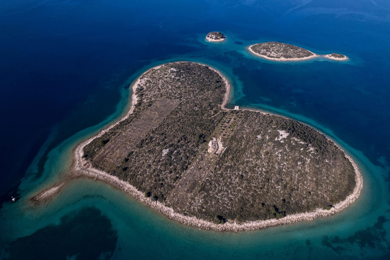 ▲位於帕斯曼海峽的加列斯尼亞克島(Galesnjak)因為有著愛心形狀,所以又被稱作「愛之島」。(圖/路透)