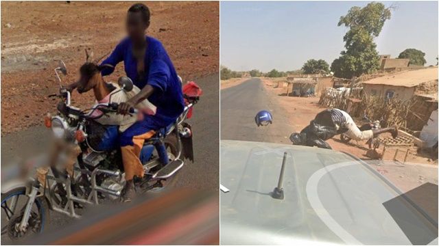 Google地圖的街景功能非常方便,但也經常捕捉到令人哭笑不得的時刻。街景車在塞內加爾(Senegal)尤佩.阿瑪迪地區(Youpe Amadi)直擊少年把山羊環抱胸前騎車,再往前一段路程,卻疑似與機車相撞,騎士騰空翻滾、安全帽噴飛的瞬間竟然也被拍下。