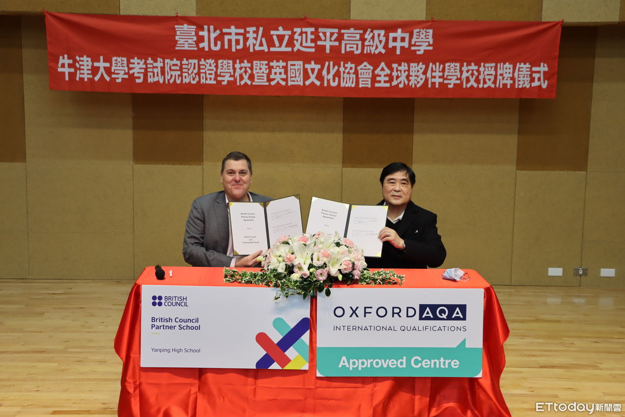 台北市私立延平高中今(15日)宣布,成功通過英國牛津大學考試院審查,成為牛津AQA認證學校,同時加入英國文化協會夥伴學校,今舉行授牌儀式,正式引進英國頂尖國際教育系統,於112學年度提供英國中學IGCSE文憑課程,並由英國文化協會提供專業國際考試服務。