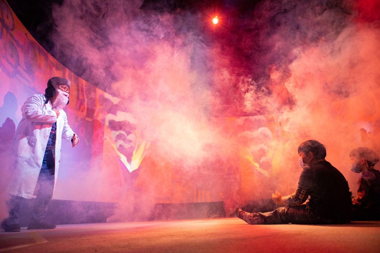 ▲劇場說書人帶領觀眾走入故事中,結合動畫、科技應用。(圖/移動故事屋)