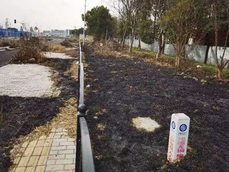 ▲整片綠化帶被燒毀。(圖/翻攝微博)