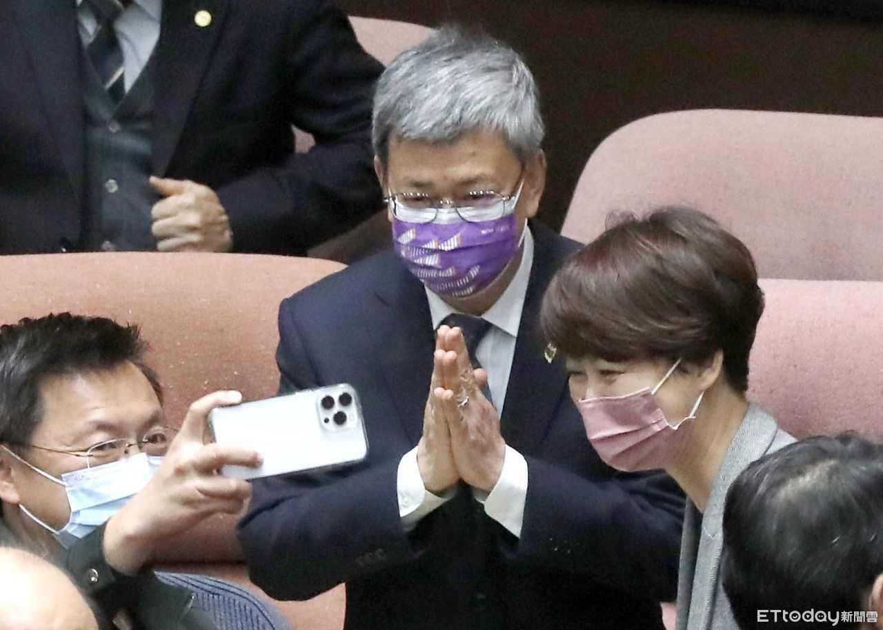 ▲陳建仁在議場與綠委自拍。(圖/記者屠惠剛攝)