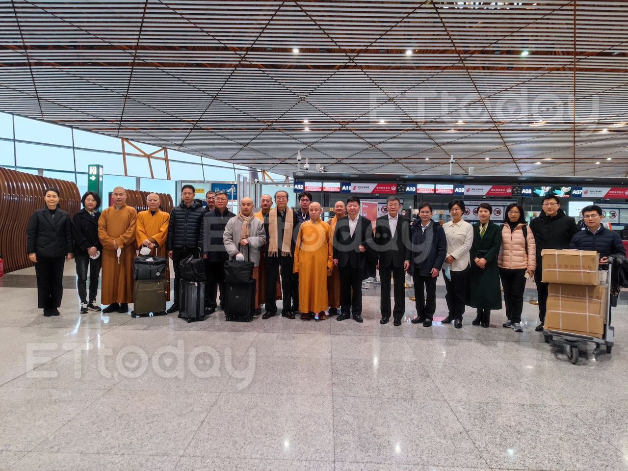 針對台灣方面稱陸方10日晚上放棄來台意願?知情人士獨家提供「星雲弔唁代表團」,出發當天11日在首都機場等待的照片。大陸弔唁團長、國台辦副主任龍明彪(右8)和揚州副市長劉流(最左)都在場。其中來自星雲大師家鄉代表成員,特地提前10日在首都機場附近住一晚,希望順利搭乘當天11日早上8點35時國航飛往台灣。