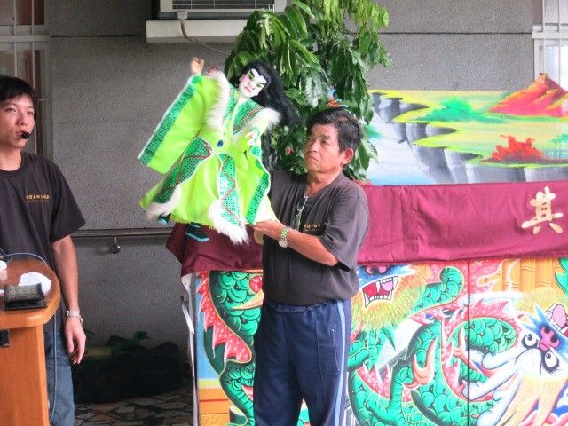 ▲掌中劇資深藝師朱振源(右二)提攜後進不輟,義務教導學生口白技巧與操偶動作,獲左鎮國小頒贈感謝狀。(圖/文化部提供)