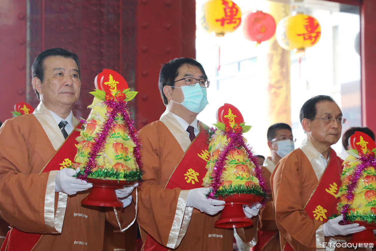 黃偉哲表示,祝壽大典莊嚴隆重,來自各界的信眾齊聚,誠心為濟公活佛祝壽,為台南市祈福,也祈求新的一年風調雨順、國泰民安、國運昌隆,民眾都能充滿正能量,平安順利。