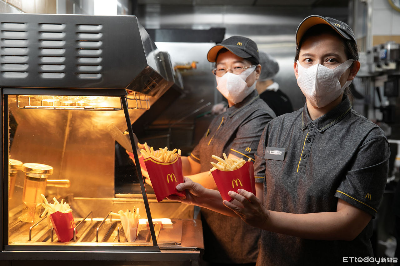 ▲麥當勞等業者表示,門市員工在執勤期間,仍維持全面佩戴口罩。(圖/業者提供)