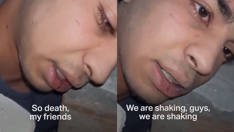 影片中鏡頭不時搖晃,因為強震後還發生無數餘震,艾爾丹姆也解釋,「還在搖,不是我的手在抖,是地震」,接著說明自己當下的狀況,「我無法自己脫困,如果我試圖往前,那裡有個洞,如果我往後爬,你們可以看到天花板在下面,有東西壓在我上面。」