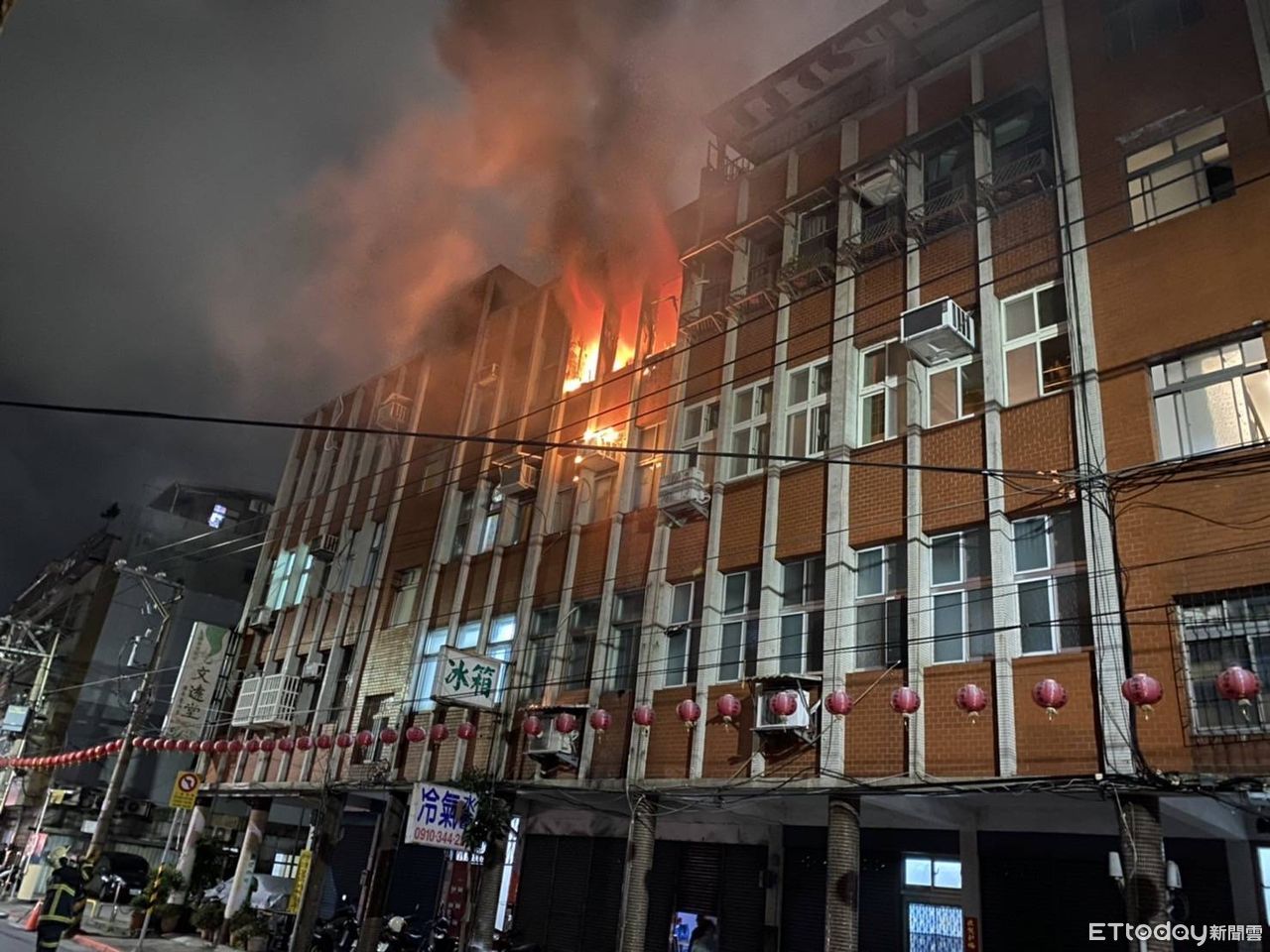▼火舌從公寓的窗戶中噴出,現場瀰漫濃煙。(圖/記者黃彥傑翻攝)