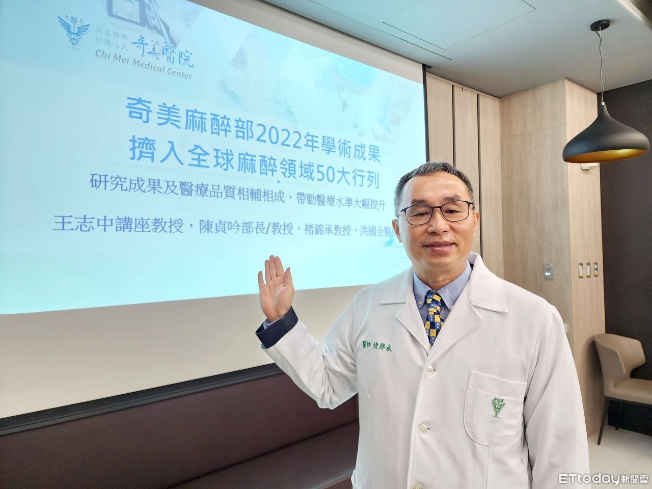▲奇美醫學中心麻醉部副部長褚錦承教授指出,2022年麻醉部的論文發表量、質俱佳,網路公司Hanson臨床科研報導指出奇美醫學中心麻醉部的期刊影響係數總分數在全世界的麻醉科排名第24。(圖/記者林悅翻攝,下同)