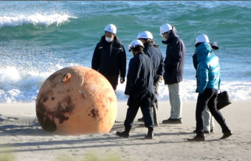 日本靜岡縣濱松市的遠洲灘附近海岸被人發現出現一顆巨大的不明鐵球,只見這個不明物體呈淺黃色,表面不知是沾上沙子還是生鏽,部分呈棕色。警方獲報後隨即出動X光機到場掃瞄檢查,確認球體內部,所幸目前已確定該不明物體並無爆炸風險。