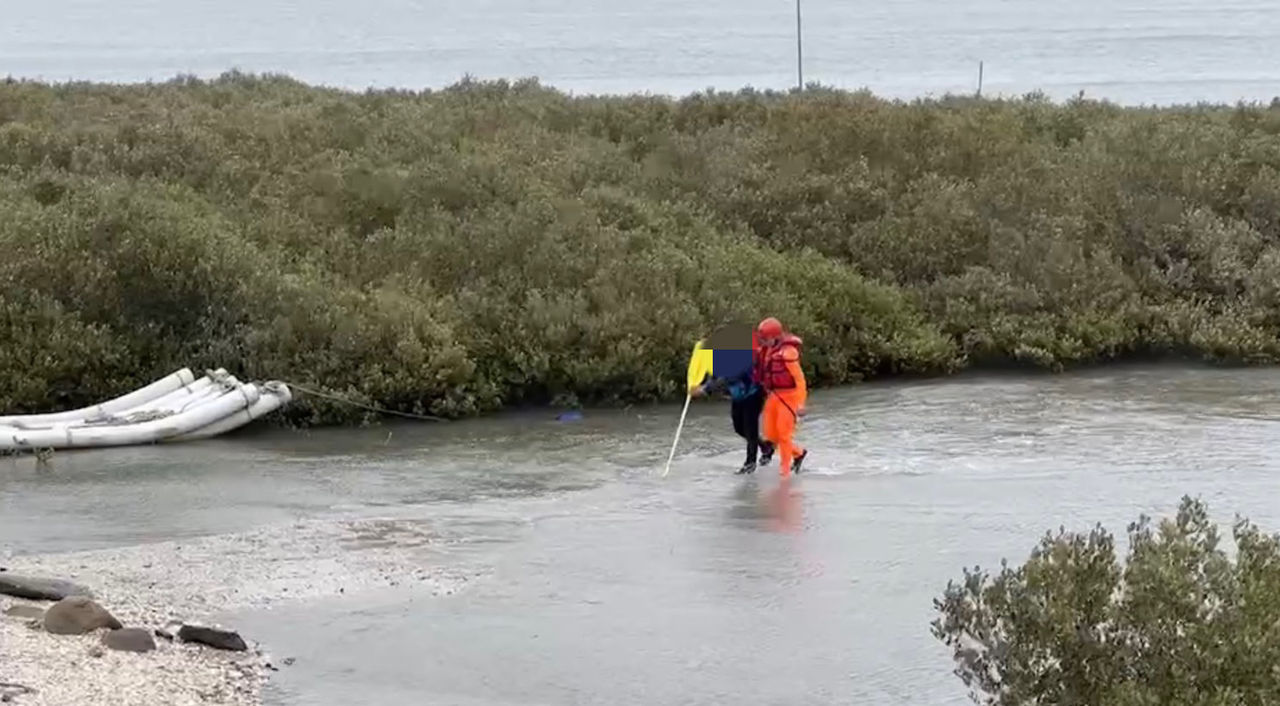 海巡人員抵達現場進行環境安全評估,因水深僅及腰且受困地點距岸約50公尺,故由海巡人員穿著救生衣,攜帶魚雷浮標用走路前往救援,釣客一手拄著槳一手緊拉救援人員,徒步走出,海巡人員還提供熱飲祛寒保暖,經檢視該民眾身體狀況良好無需就醫,隨後自行開車返家。