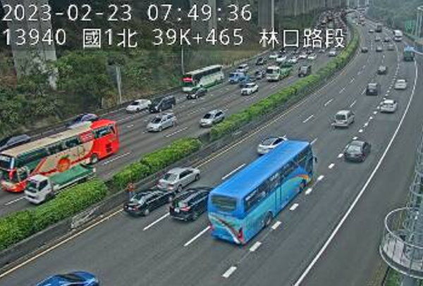 ▲現場畫面。(圖/翻攝高公局網站)記者陳俊宏/綜合報導高公局表示,今天(23日)7時44分,國道1號北向39.4K、林口路段,發生2輛小客車追撞佔用內線車道,事故處理中,請用路人小心駕駛。