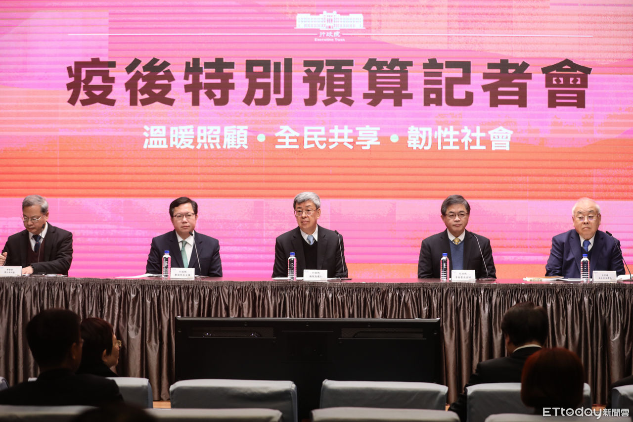 ▲行政院長陳建仁主持疫後特別預算記者會。(圖/記者林敬旻攝)