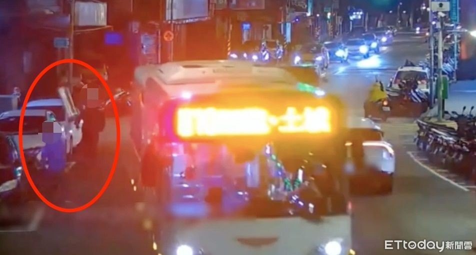 ▲哥哥在大街上拿煙筒丟擲弟弟(紅圈) 。(圖/記者陳以昇翻攝)