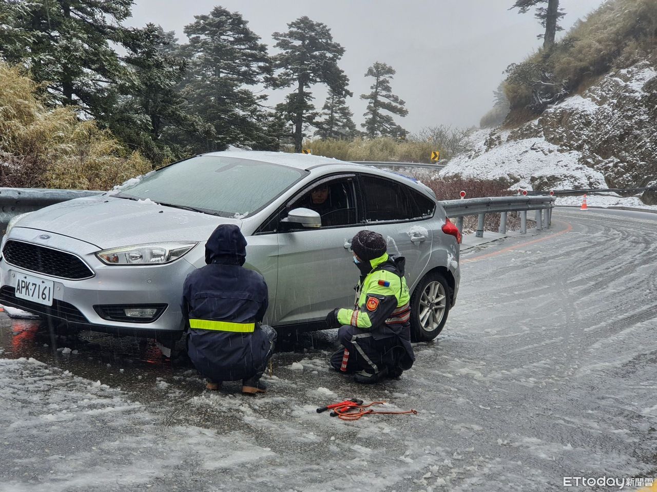 ▲強烈大陸冷氣團來襲,高海拔路段不排除管制。(圖/新城分局提供)
