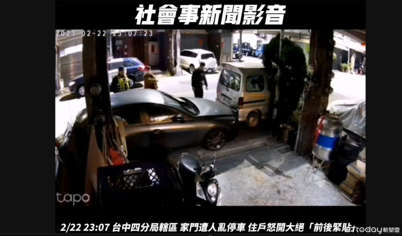 台中市一名31歲黃姓男子22日晚間到南屯區大墩二街附近吃飯,貪圖一時方便,遂將車子停放在一戶民宅前,擋住住戶進出也未留聯繫方式,且一停就從晚間7點多停至深夜11點,屋主開大絕找來兩台車「前後夾攻」馬自達,留下「一線天」的空間。黃男吃完飯後取車發現傻眼,四處敲門又無回應,只好報警處理。