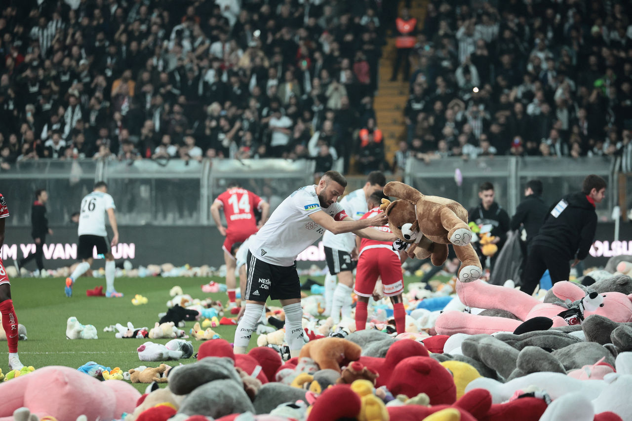 土耳其大地震導致許多災民與孤兒,日前舉行的足球賽在比賽中暫停,球迷們將大量的泰迪熊和其他玩偶丟進場中,彷彿下起「泰迪熊雨」,這些填充玩偶都將捐給需要的災民,同時,許多認為政府救災不力的球迷也怒吼「下台」。