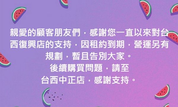 ▲「台西水果」復興店悄然結束營業!(圖/擷取自黃婉如臉書)
