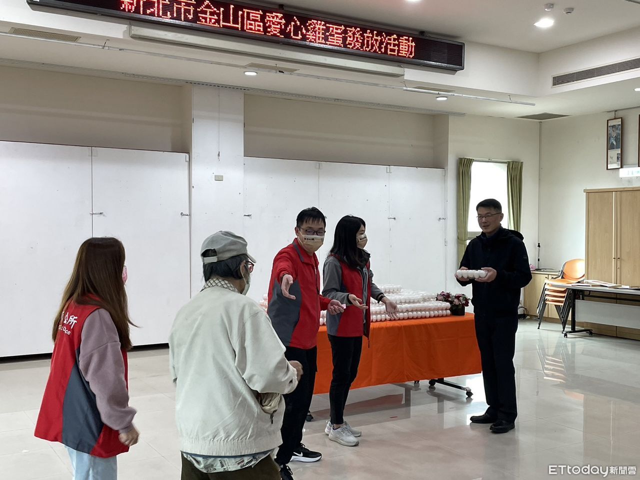 近期蛋價居高不下,帶動各項民生必需品價格上漲,金山區長劉昌松擔心對弱勢民眾的生活造成影響,家庭食材不足缺少營養,在公所發起捐款購置雞蛋送弱勢的活動,獲得里長與同仁們的熱烈響應,甚至連環保局金山區隊、永和區隊也共襄盛舉,2000顆雞蛋一天就認購完畢,非常感謝同仁對於弱勢家庭及獨居老人的愛心。