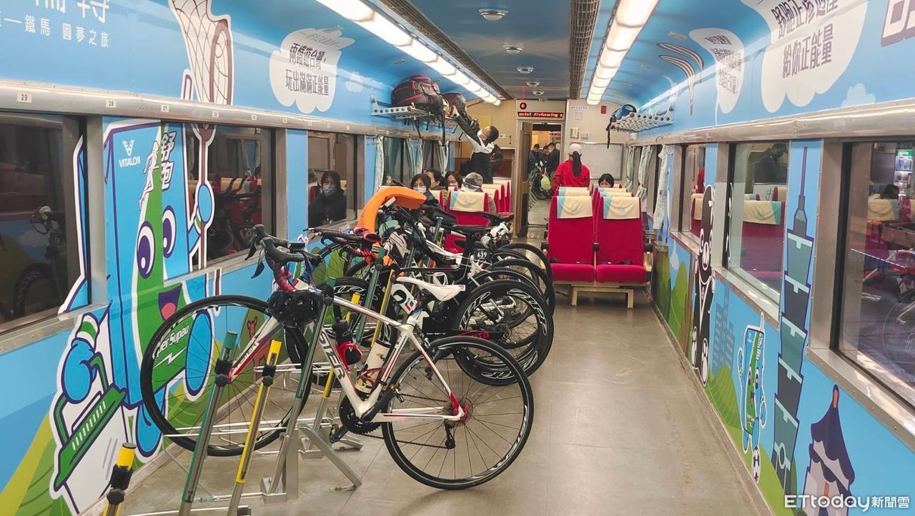 ▲台鐵兩鐵列車今起航,吸引119名鐵人選手攜帶自行車搭乘。(圖/台鐵)