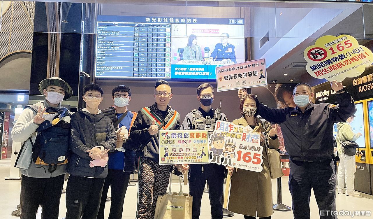 ▲中壢警分局今天在轄區新光影城進行「阿昭署長」反詐騙宣導。(圖/記者沈繼昌翻攝)