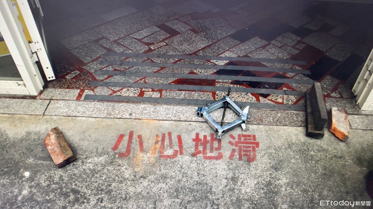 ▲苗栗彩券行遭竊,竊賊以千斤頂撐開鐵門。(圖/記者蔡文淵翻攝,下同)