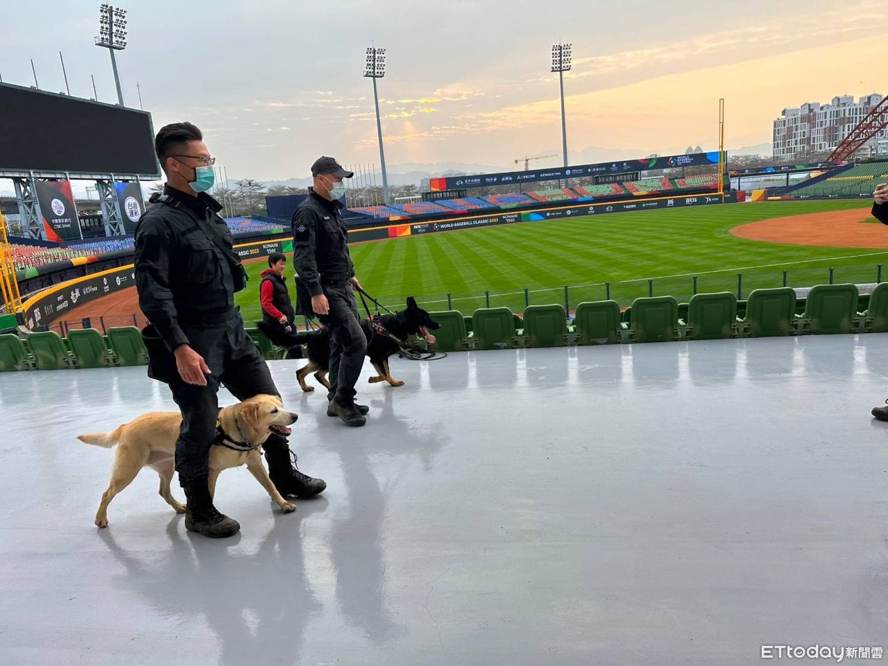 2023世界棒球經典賽A組預賽3月8日至12日,在台中洲際棒球場展開,5日進行暖身賽前,3、4日早上球場一開門最先進場的不是球員,是台中市警察局警犬隊9隻警犬,滴水不漏的搜尋毒品或爆裂物,鉅細靡遺的程度讓大聯盟的安檢人員不停稱讚。