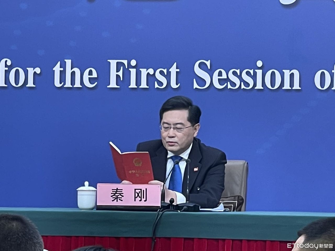 秦剛首先回應,「我知道今天肯定要問到台灣問題,所以特地帶來了一本中華人民共和國憲法。」