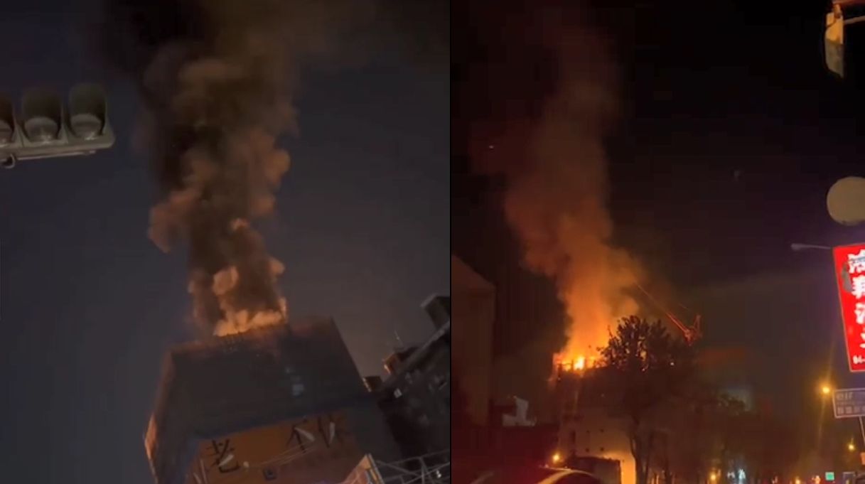 記者爆料網影片內容可見,火勢從頂樓開始燃燒蔓延,約有2層樓陷入火海,不斷竄出濃濃黑煙。