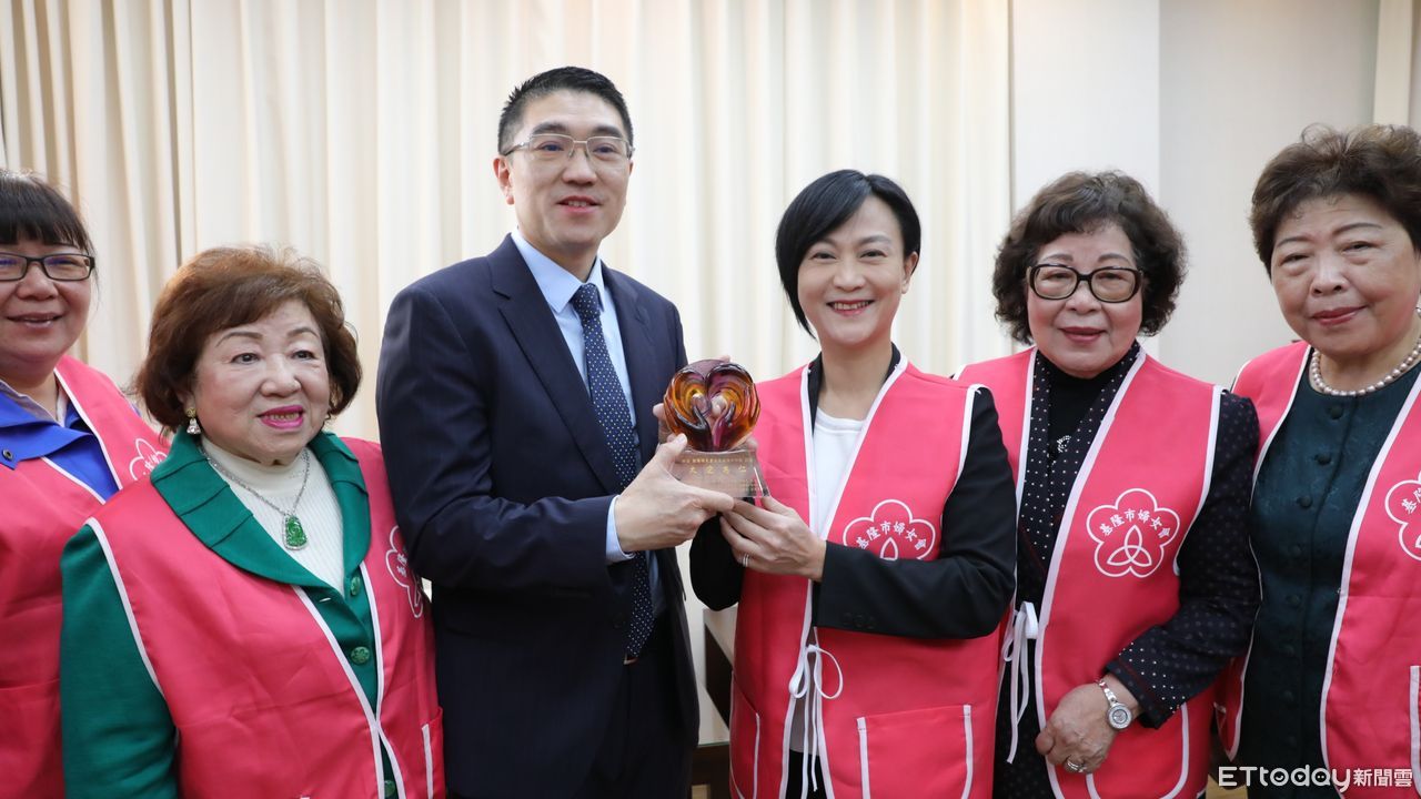 ▲基隆婦女會拜會贈「大愛為仁」獎座,肯定謝國樑力推「行人友善」家人都安心。(圖/記者郭世賢翻攝,下同)
