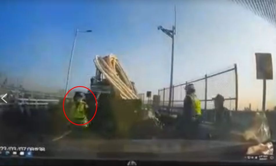 黃姓男子昨駕駛大貨車行駛台64線往新莊方向時,車輛突然拋錨,警方接獲通報後前往處理,沒想到2名員警在拋錨貨車後方警示及疏導管制交通時,大貨車疑因煞車失靈,車輛往後方滑行,一名女警被嚇得趕緊逃命,一邊大喊一邊揮舞右手,提醒另外2名員警逃離,還好3名員警都沒有受傷。