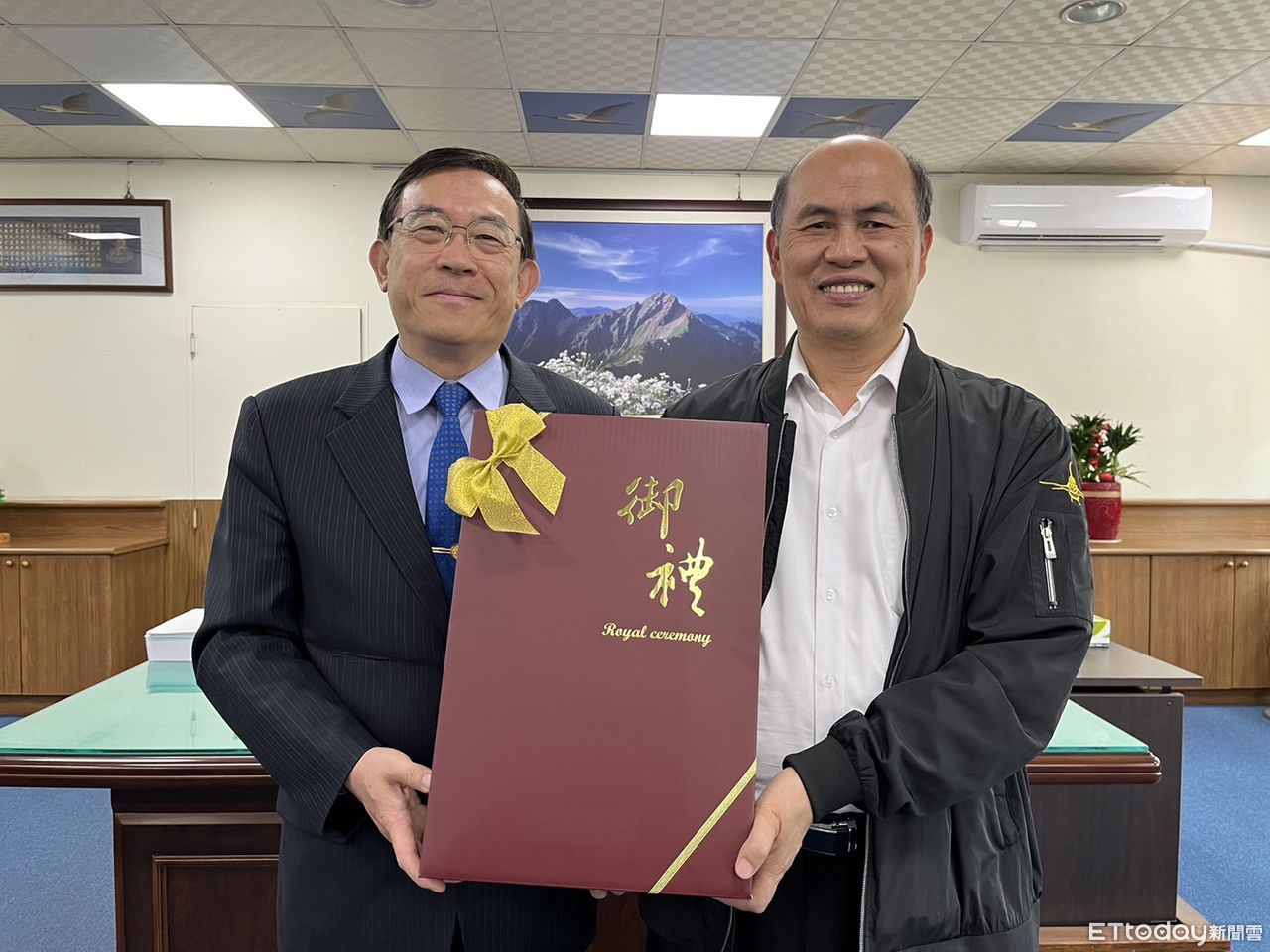 ▲檢察總長 邢泰釗(左) ,10日上午在台南地檢署檢察長葉淑文等人陪同下,親自致贈水果慰勉偵辦學甲88槍槍擊案檢警人員辛勞,由台南市警察局長廖宗山代表接受。(圖/記者林悅翻攝,下同)