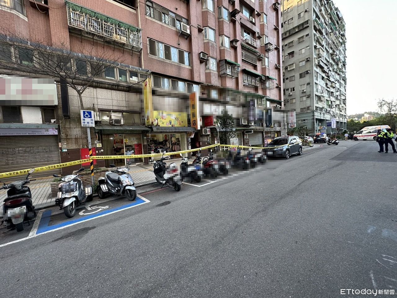 ▲汐止1名工人在15樓維修遮雨棚,不慎安全鏈斷裂重摔身亡。(圖/記者邱中岳翻攝)