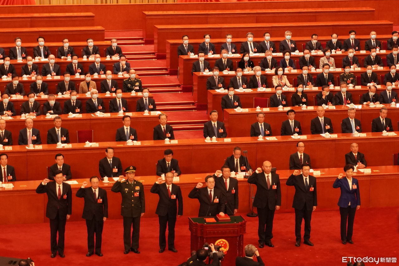 ▲新一任大陸國務院副總理和國務委員宣誓,諶貽琴站在最右邊。(圖/記者蔡儀潔攝)