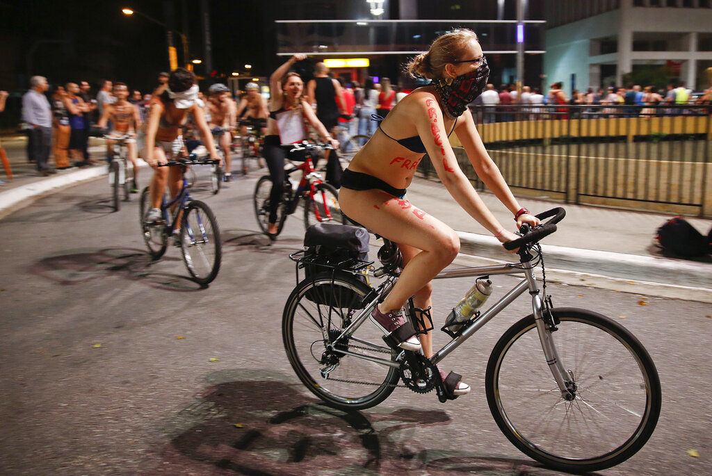 《法新社》報導,巴西民眾響應「世界裸體騎車」(World Naked Bike)活動,提高人們對於單車騎士脆弱性的重視,初步估計約有50人參加,但並非所有成員皆全裸,有些人仍穿著單薄衣物,還有一名男子把自己從頭到腳都塗成綠色。