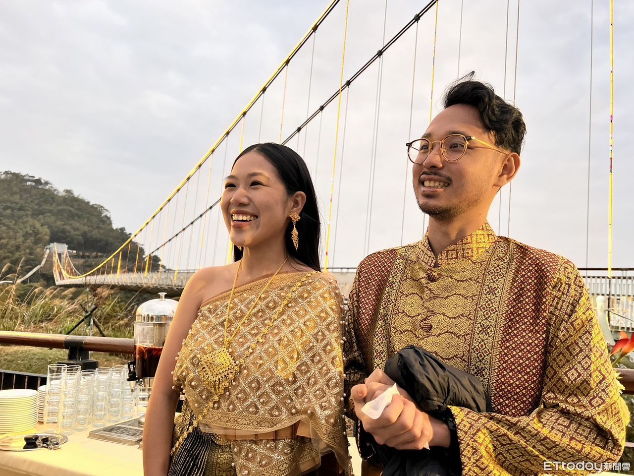 ▲新人在太平雲梯下互許終身。(圖/記者翁伊森攝)