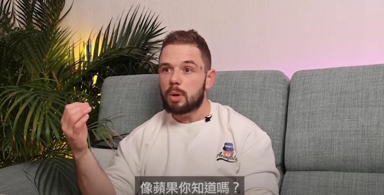 ▲盧卡斯表示,他看到阿北的蛋蛋像蘋果一樣大。(圖/翻攝自YouTube/Ku's dream酷的夢)