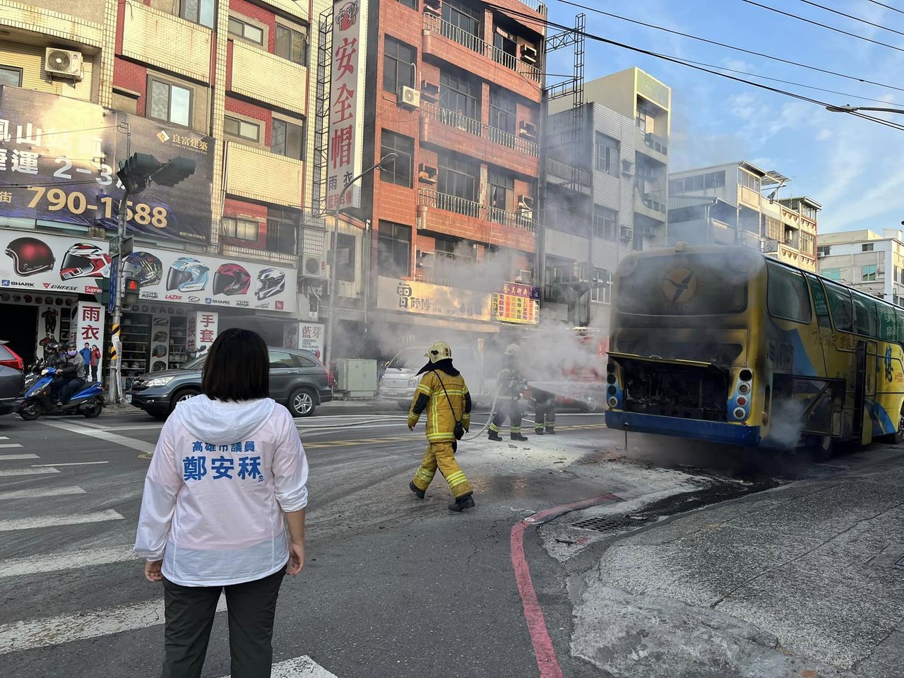 ▲鳳山商工校車起火。(圖/翻攝臉書/高雄市議員鄭安秝)