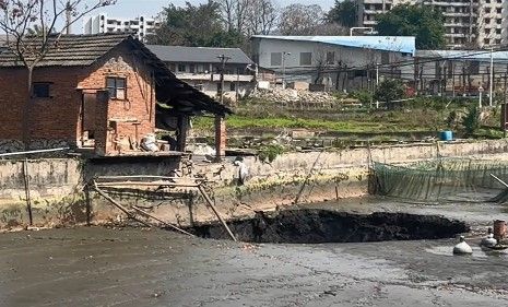 據了解,池塘旁的房子有發生崩塌情形。《ING直播》報導,天府鎮人民政府工作人員15日說,坑洞出現的原因仍在調查中,可能是地質原因導致,因為該地本來是礦區,而倒塌房屋內沒住人,此事故沒人傷亡。看影片請點我。