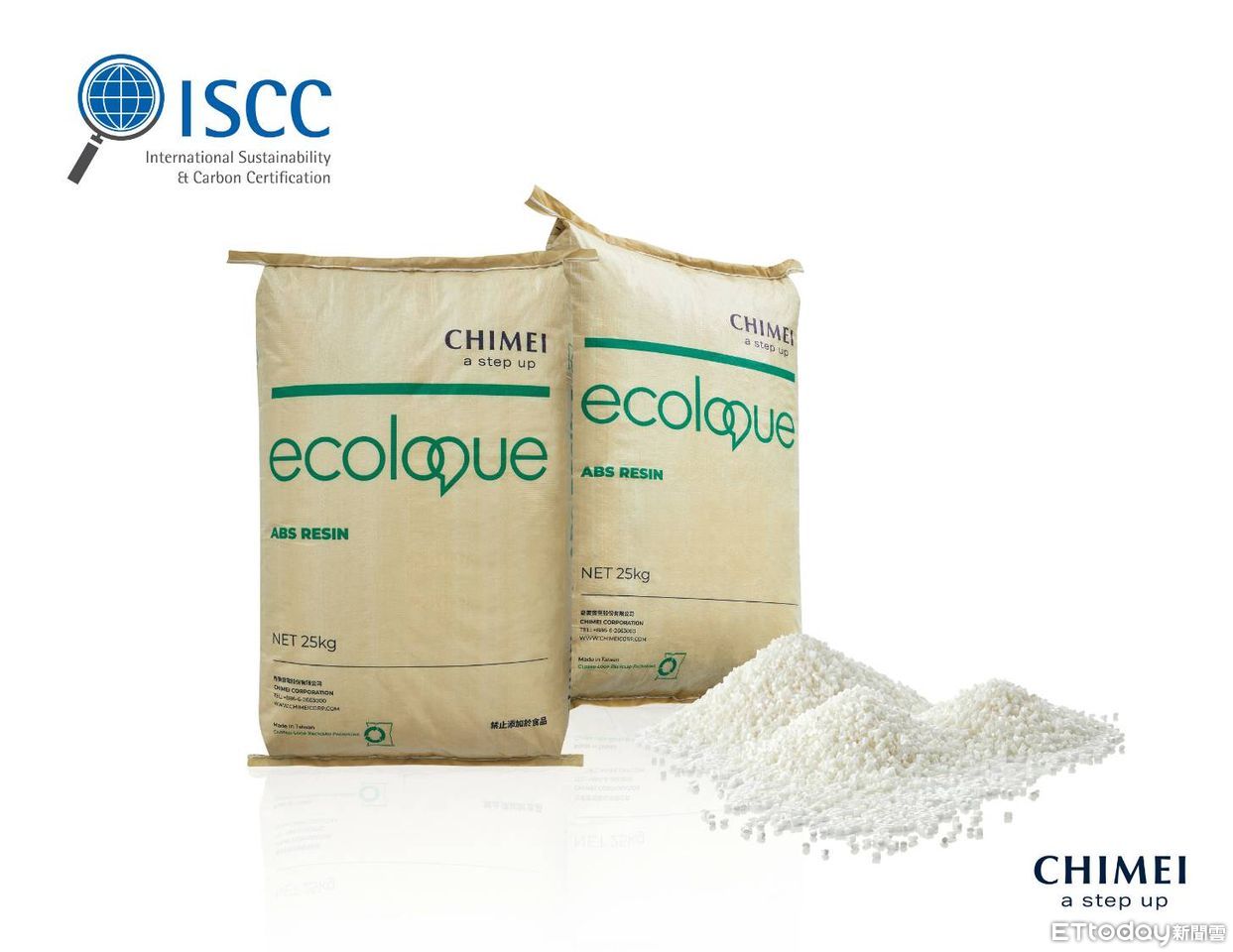 這次生產之生質ABS採用奇美實業於2022年10月取得的國際永續性與碳驗證(International Sustainability and Carbon Certification, ISCC) PLUS認證,此認證採質量平衡會計準則,確保可再生進料在生產流程中被正確計算與使用,提供了從原料到最終產品的供應鏈可追溯性,為產品的永續性提供全球適用之標準。在此認證下也能確保奇美使用的生質材料,並非來自於糧食來源。