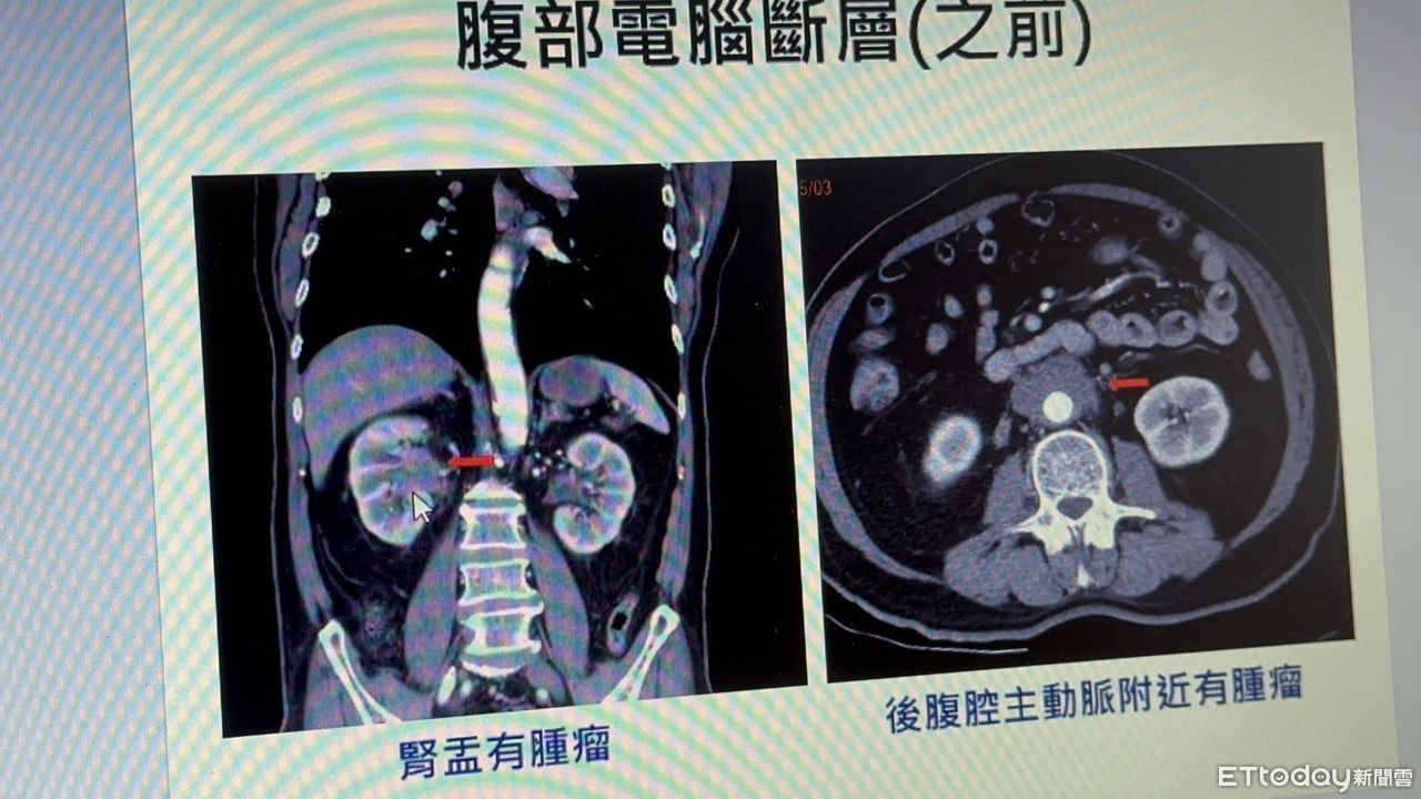 ▲林先生在腎臟發現疑似有癌症病灶的陰影 。(圖/記者吳奕靖攝)