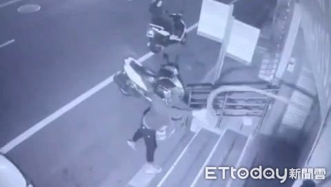 台中市警察局太平派出所日前接獲診所報案,指診所外的鐵門被人潑漆,警方調閱監視器,發現是2人共乘機車,前騎乘者下車潑漆,還意外潑到自己雙腳,但車牌卻被口罩遮住。
