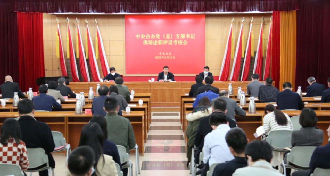 中台辦領導班子成員參加會議,中台辦主任宋濤主持會議講話,中央和國家機關工委基層組織建設指導部易化冰副部長到會指導。參加述職的黨(總)支部書記全面總結回顧2022年度抓機關黨建工作情況。